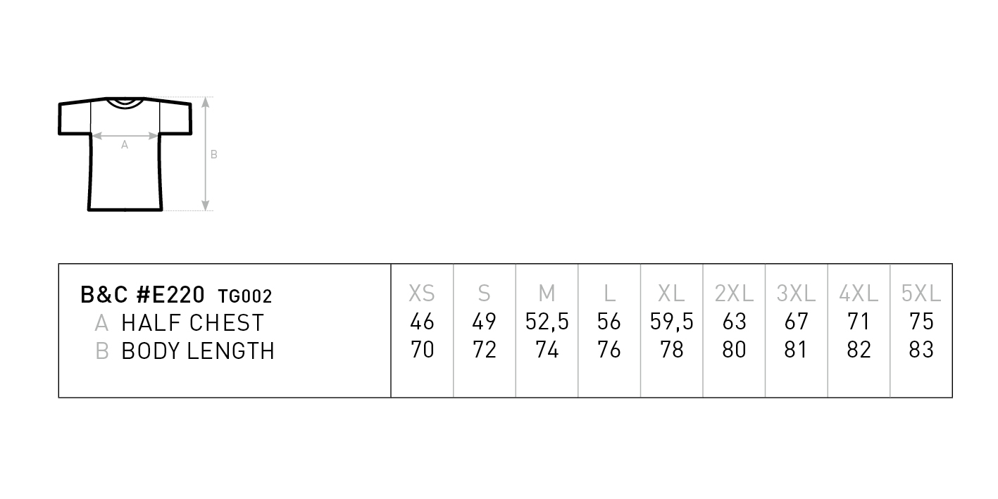Il capo sostenibile, robusto, contemporaneo in 100% cotone . Il collo a costine, l’eccellente stampabilità e l’assenza di etichette, rendono questo capo perfetto per creazioni personalizzate. Inclusiva e unisex, con un’ampia gamma di taglie (XS – 5XL), la B&C #E220 è super versatile: basta scegliere una taglia più grande o più piccola per personalizzare il look!